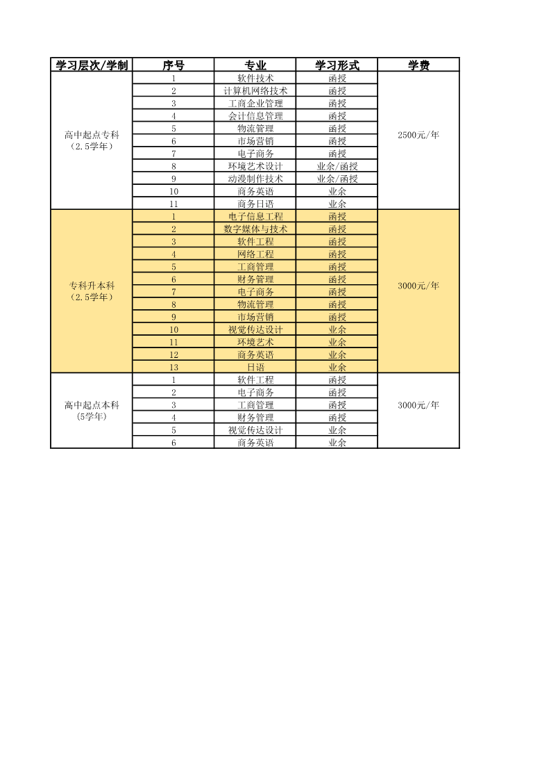 成人学历教育学费标准